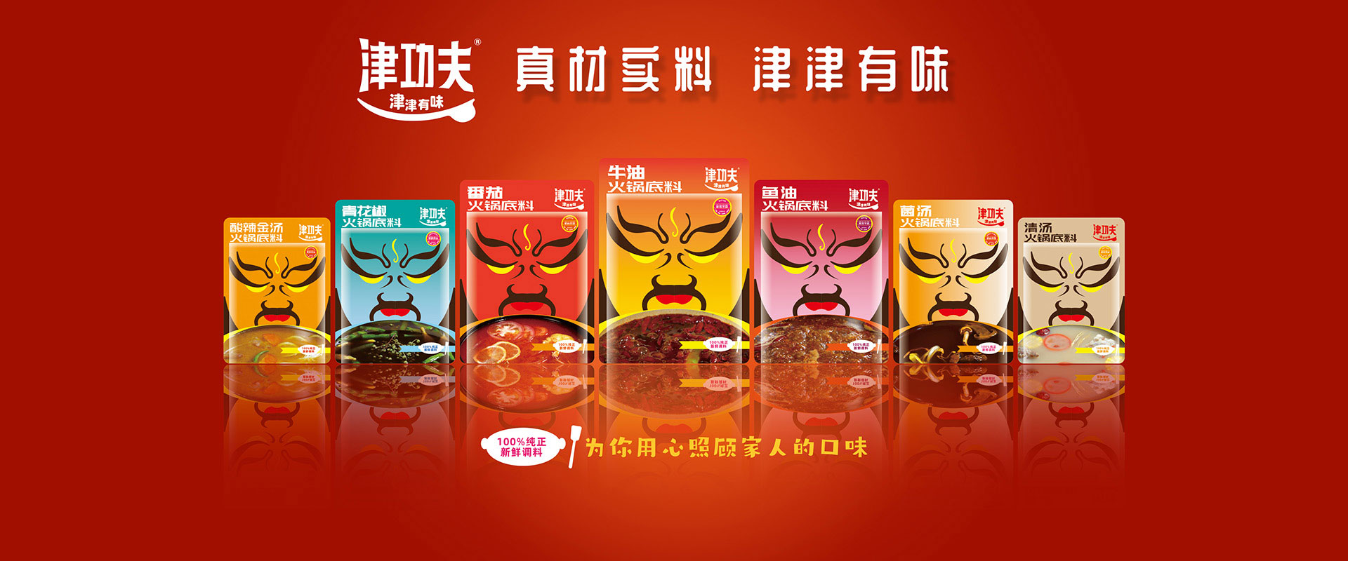 廣東津功夫食品有限公司,位于廣東省肇慶市國家高新區(qū),占地面積約2.5萬平方米,是以專業(yè)研發(fā)、生產、銷售復合調味品及火鍋底料為主的現(xiàn)代化食品企業(yè)。      "津功夫"為公司注冊商標。公司擁有四大調味品專用生產車間及國內領先的生產工藝;裝備有反應釜、電磁炒鍋、天然氣炒鍋、蒸煮生產線、各型號全自動包裝機、冷封生產線等先進生產設備,年生產能力達2萬噸;配備有微檢、重金屬、金檢、水分、折光等檢測設備。        公司依照國家食品安全法,采用GMP及ISO管理標準,已先后通過ISO-22000質量管理體系認證、HACCP認證。        公司研發(fā)團隊由公司創(chuàng)始人親自帶隊,立足當下,不斷創(chuàng)新,將在調味品行業(yè)20余年的潛心研究成果變?yōu)楝F(xiàn)實,精品輩出,為客戶創(chuàng)造更多、更好的價值。公司以川味調味品為根,以客戶需求為本,開發(fā)了復合調味品及火鍋底料兩大板塊的系列產品。復合調味品板塊涵蓋: